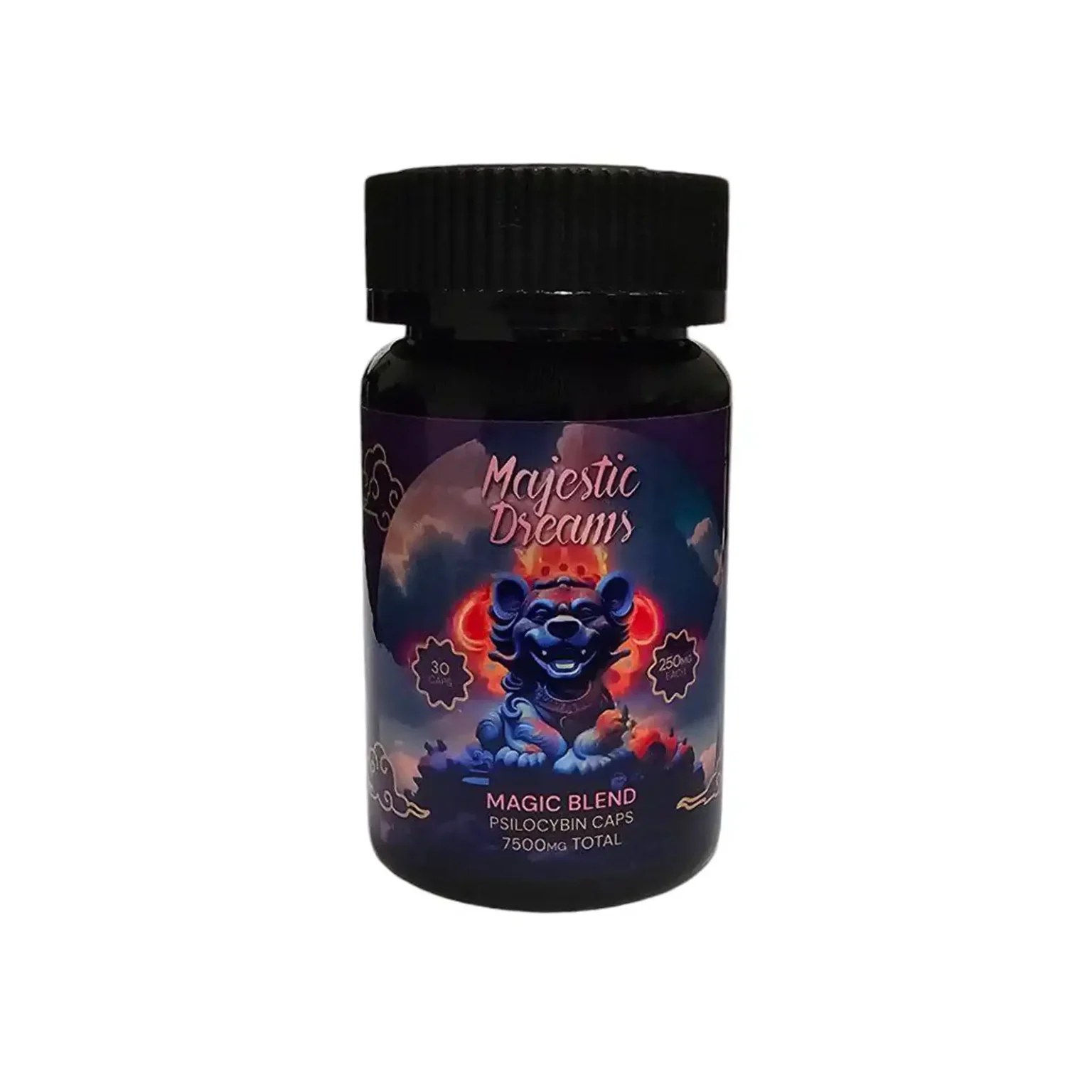 Introducing Majestic Dreams Psilocybin Capsules—crafted to enhance wellness and bring balance to mind and body. Each bottle contains 30 precisely dosed microcapsules, each containing 250mg of high-quality psilocybin mushrooms, amounting to a total of 7500mg per bottle. With four uniquely formulated blends, these capsules cater to various wellness needs and personal goals: